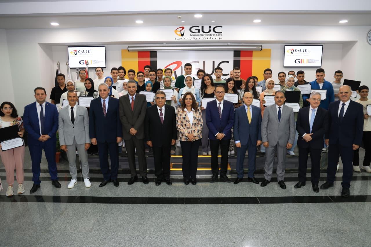 جاء ذلك بحضور اللواء طارق مرزوق محافظ الدقهلية والمهندس حازم الأشموني محافظ الشرقية واللواء إسماعيل كمال محافظ أسوان واللواء أشرف الجندي محافظ الغربية واللواء دكتور علاء عبدالمعطي كفر الشيخ والدكتور أشرف منصور رئيس مجلس أمناء الجامعة الألمانية بالقاهرة و الدكتور ياسر حجازي رئيس الجامعة الألمانية بالقاهرة و الدكتور سليم عبد الناظر رئيس الجامعة الألمانية الدولية ويوليوس جورج لوى رئيس مجلس أمناء الجامعة الألمانية الدولية و عمداء الكليات و أعضاء هيئة التدريس و أولياء أمور الطلاب وعدد من القيادات الإعلامية المتخصصة بقطاع التعليم.