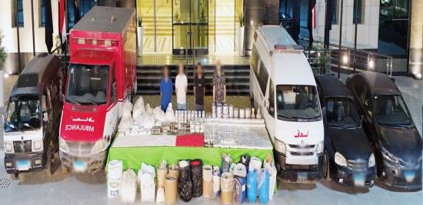 وكشفت التحريات أن المتهمين استخدموا سيارتي إسعاف تابعتين لإحدى الشركات الخاصة كوسيلة للتمويه وتجنب الرصد الأمني أثناء نقل المخدرات.