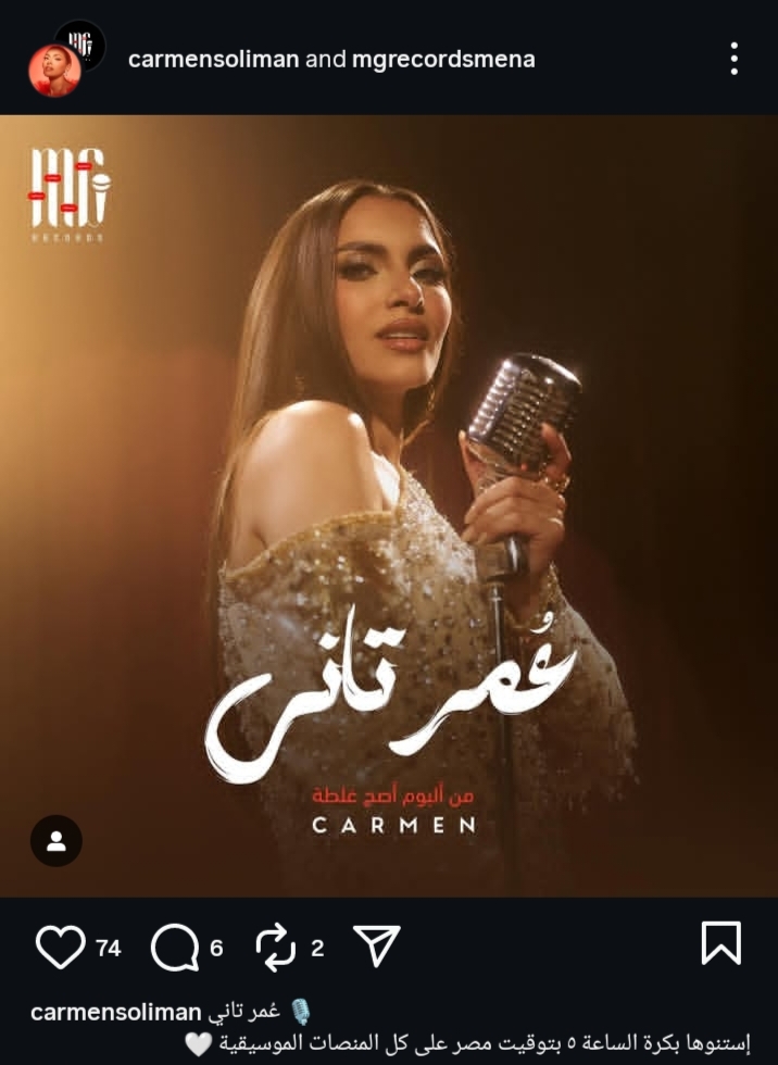 كارمن سليمان تروج لـ أغنيتها الجديدة "عُمر تاني".. وتكشف موعد طرحها