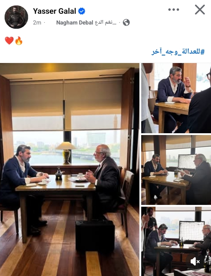 ونشر ياسر جلال صور من كواليس تصوير مسلسل للعدالة وجه آخر، من خلال حسابه الرسمي عبر موقع التواصل الاجتماعي "فيسبوك"، وكتب:" للعدالة وجه آخر".