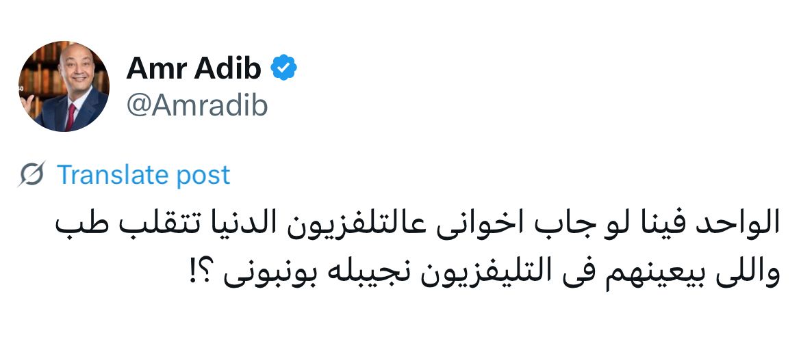 ورغم أن أديب لم يذكر الهيئة أو قرارها فى منشوره، كما لم يذكر الشخصية التى تم اختيارها ضمن التشكيل إلا أنه يشير إلى ذلك حيث كتب أديب من خلال حسابه الرسمي عبر موقع التواصل الاجتماعي إكس، متسائلًا: "الواحد فينا لو جاب إخواني عالتلفزيون الدنيا تتقلب طب واللي بيعينهم في التلفزيون نجيبله بونبوني؟".