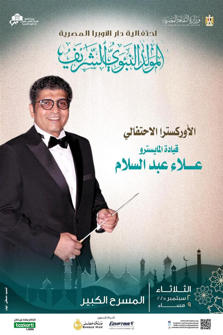 فى إطار حرص الثقافة المصرية على ترسيخ القيم الروحية والإنسانية في المجتمع تحتفل دار الأوبرا المصرية بالذكرى العطرة للمولد النبوى الشريف في مستهل موسمها الفني الجديد من خلال الأمسية التي يحييها النجم محمد ثروت بمشاركة مطربي الموسيقي العربية بالأوبرا أنغام مصطفى، أحمد حسن، مصطفى النجدي وأميرة أحمد ومصاحبة الأوركسترا الإحتفالى بقيادة المايسترو الدكتور علاء عبد السلام وذلك فى التاسعة مساء الثلاثاء 2 سبتمبر على المسرح الكبير .