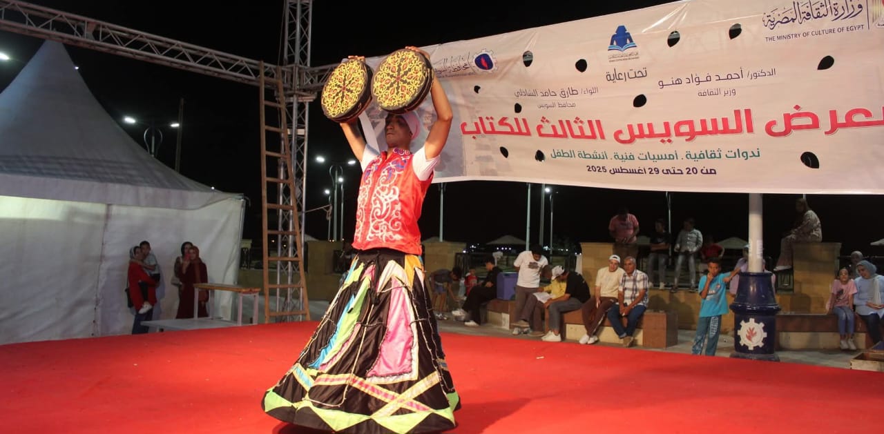 تواصلت فعاليات البرنامج الفني الذي تقدمه الهيئة العامة لقصور الثقافة برئاسة اللواء خالد اللبان، ضمن مشاركتها في معرض السويس الثالث للكتاب، والذي تنظمه الهيئة المصرية العامة للكتاب حتى 29 أغسطس الجاري، في إطار برامج وزارة الثقافة.