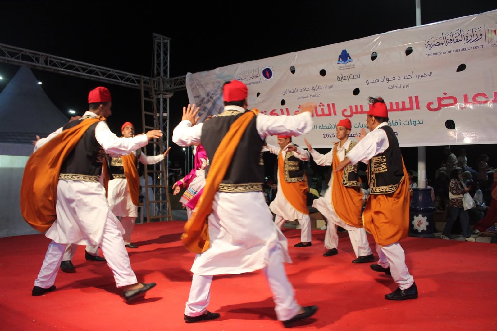 وقدمت فرقة قنا القومية للفنون الشعبية عرضا فنيا حافلا بالاستعراضات الفلكلورية والغنائية بقيادة الفنان أحمد فؤاد، وبمصاحبة الفرقة الموسيقية بقيادة الفنان عبد الفتاح الشريف، حيث تنقل الجمهور بين لوحات فنية عكست ثراء التراث الشعبي الصعيدي، شملت: الصعايدة، فلاح وقصب، التنورة، الحجالة، الفرح القناوي، إلى جانب فواصل إيقاعية وغنائية لاقت تفاعلا كبيرا.