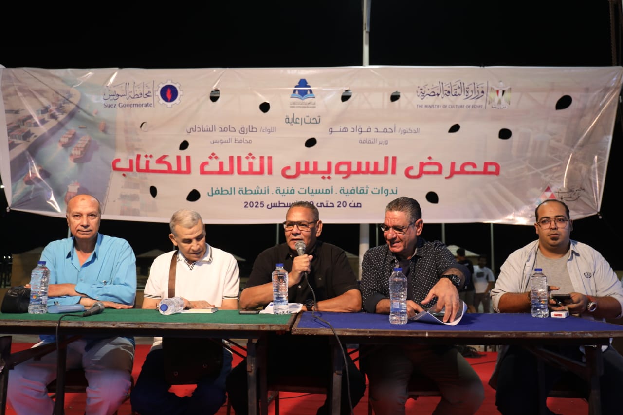 في أجواء احتفالية تحتفي بالكلمة والإبداع، وضمن فعاليات معرض السويس الثالث للكتاب، الذي تنظمه الهيئة المصرية العامة للكتاب تحت رعاية الدكتور أحمد فؤاد هنو، وزير الثقافة، انعقدت ندوة ثقافية كبرى بعنوان: "مسرح السويس.. جذور وآفاق"، أدار الندوة المخرج خالد حسن، وشارك فيها المخرجون: عبد الفتاح قدورة، محمود طلعت، مجدي إبراهيم، وأحمد رضوان، في حضور جمهور متنوع من المثقفين والمهتمين بالمسرح وأبناء المدينة.