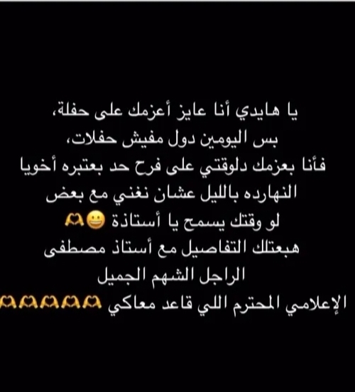 أضاف: "هبعتلك التفاصيل مع استاذ مصطفى الراجل الشهم الجميل الإعلامي المحترم اللي قاعد معاكي".