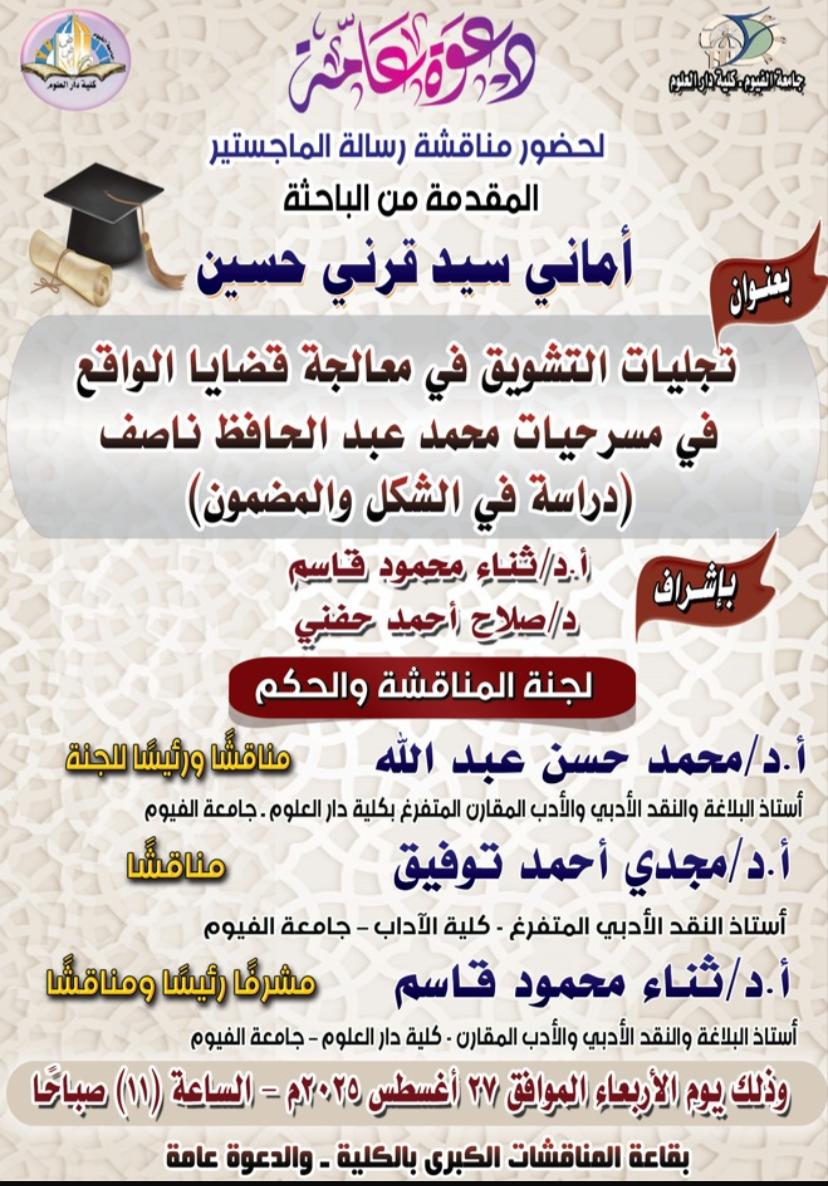 رسالة ماجستير بدار علوم الفيوم عن تجليات التشويق في مسرح محمد ناصف