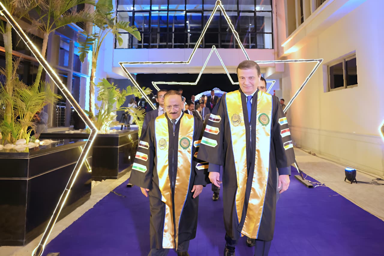 جاء ذلك بحضور المستشار محمود فوزي وزير الشؤون النيابية والقانونية والتواصل السياسي، وشريف فتحي وزير السياحة والآثار، والدكتور إسماعيل عبدالغفار رئيس الأكاديمية العربية للعلوم والتكنولوجيا والنقل البحري، واللواء خالد شعيب محافظ مطروح، واللواء مختار عبداللطيف رئيس الهيئة العربية للتصنيع، وعبدالسلام حميد وزير النقل بدولة اليمن، فضلًا عن عدد من سفراء الدول وكبار المسؤولين.
