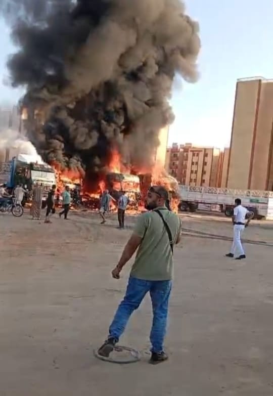 عاجل.. حريق ضخم يلتهم جراج سيارات نقل خلف مستشفى القرين بالشرقية