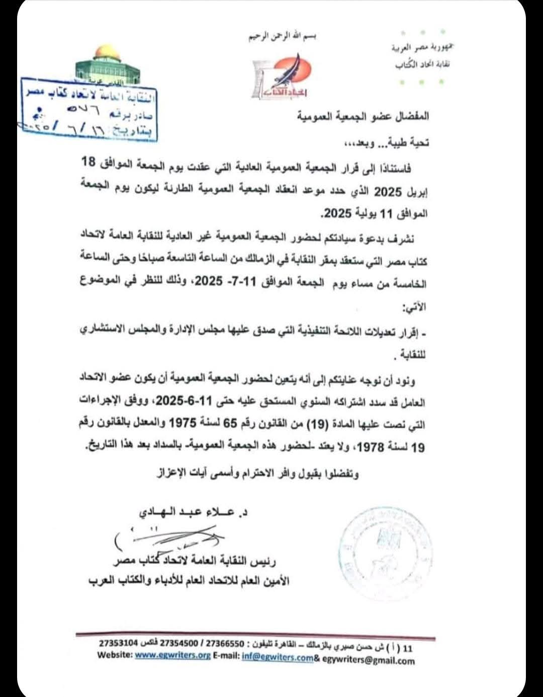 - د الجمعية العمومية الطارئة لاتحاد كتاب