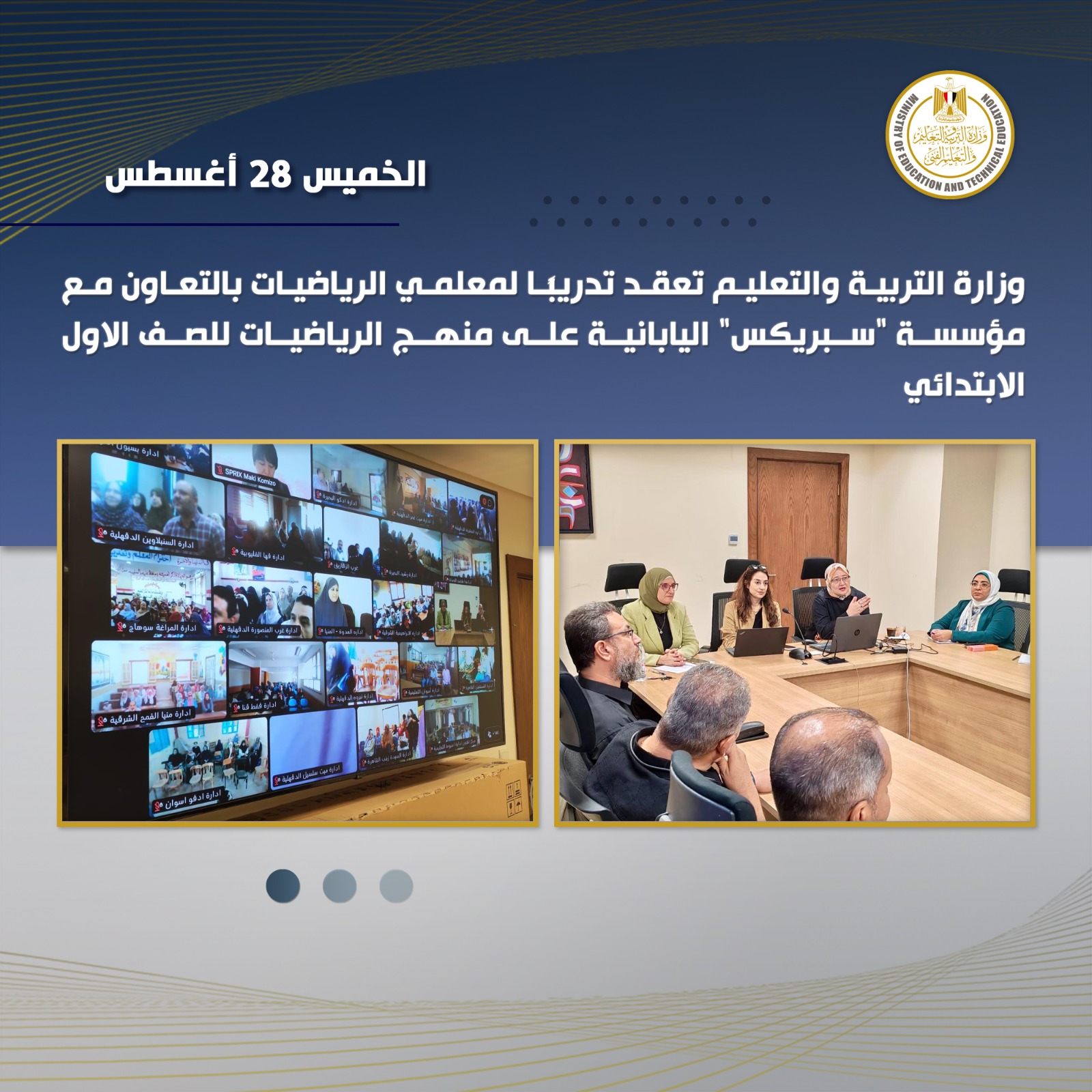 في ضوء زيارة محمد عبداللطيف، وزير التربية والتعليم والتعليم الفني مؤخرًا إلى اليابان، وفي إطار الجهود التي تبذلها الوزارة من أجل التنمية المستدامة للسادة المعلمين، والتوجه نحو تطوير المناهج، بما ينعكس إيجابًا على تنمية قدرات الطلاب وتحقيق جودة العملية التعليمية، نظمت الوزارة تدريبًا لمعلمي الصف الأول الابتدائي في مادة الرياضيات بالتعاون مع مؤسسة "سبريكس" اليابانية، حيث قام خبراء الرياضيات بالمؤسسة عبر تقنية الفيديو كونفرانس بشرح الاستراتيجية الخاصة بالمنهج وشرح محتويات الكتاب الجديد.