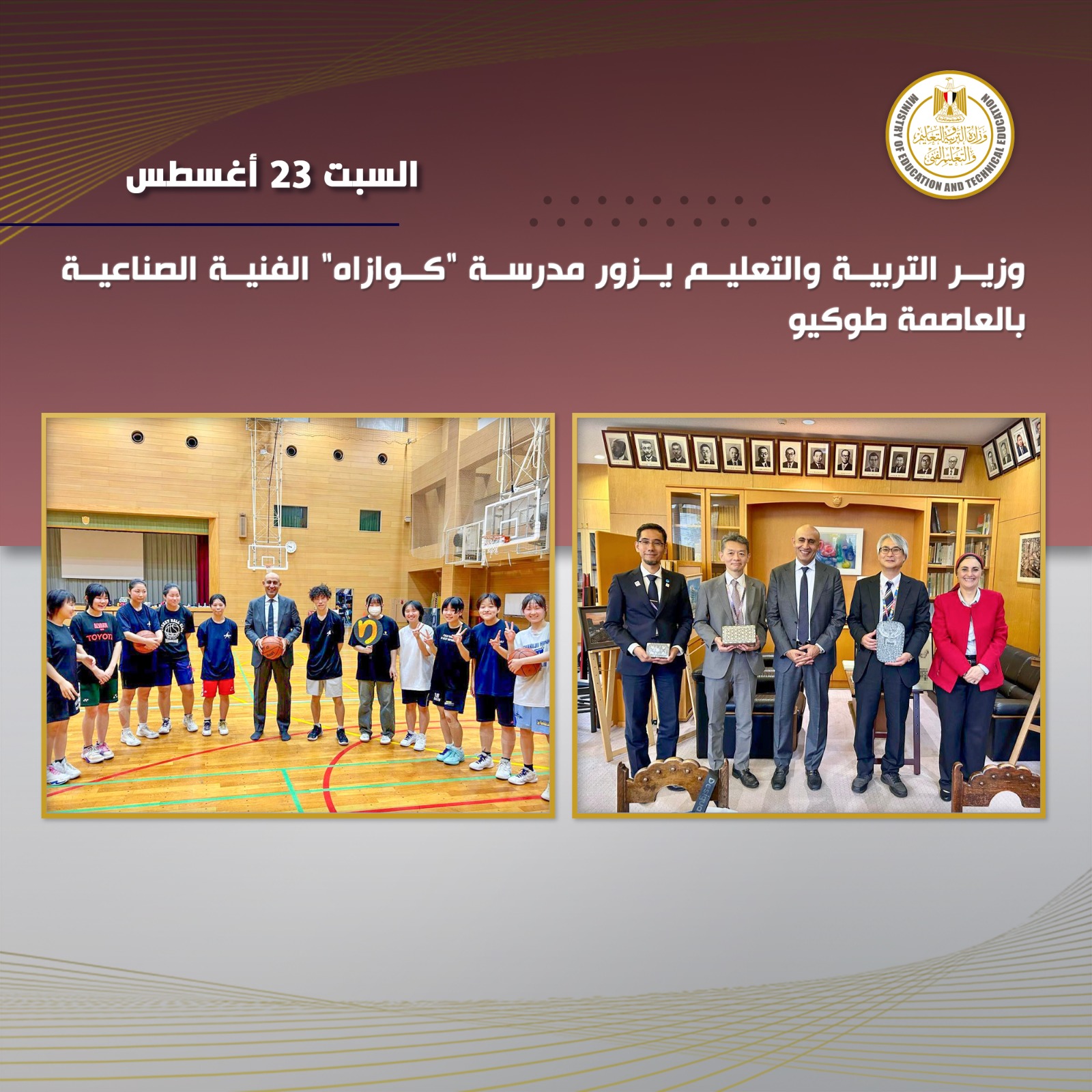 أجرى محمد عبداللطيف وزير التربية والتعليم والتعليم الفني زيارة لمدرسة كوازاة الفنية الصناعية بالعاصمة طوكيو، والتي تعد واحدة من أعرق المدارس في مجال التعليم الفني حيث تأسست عام 1907، لتكون منارة متميزة في إعداد الكوادر الشابة المبدعة.