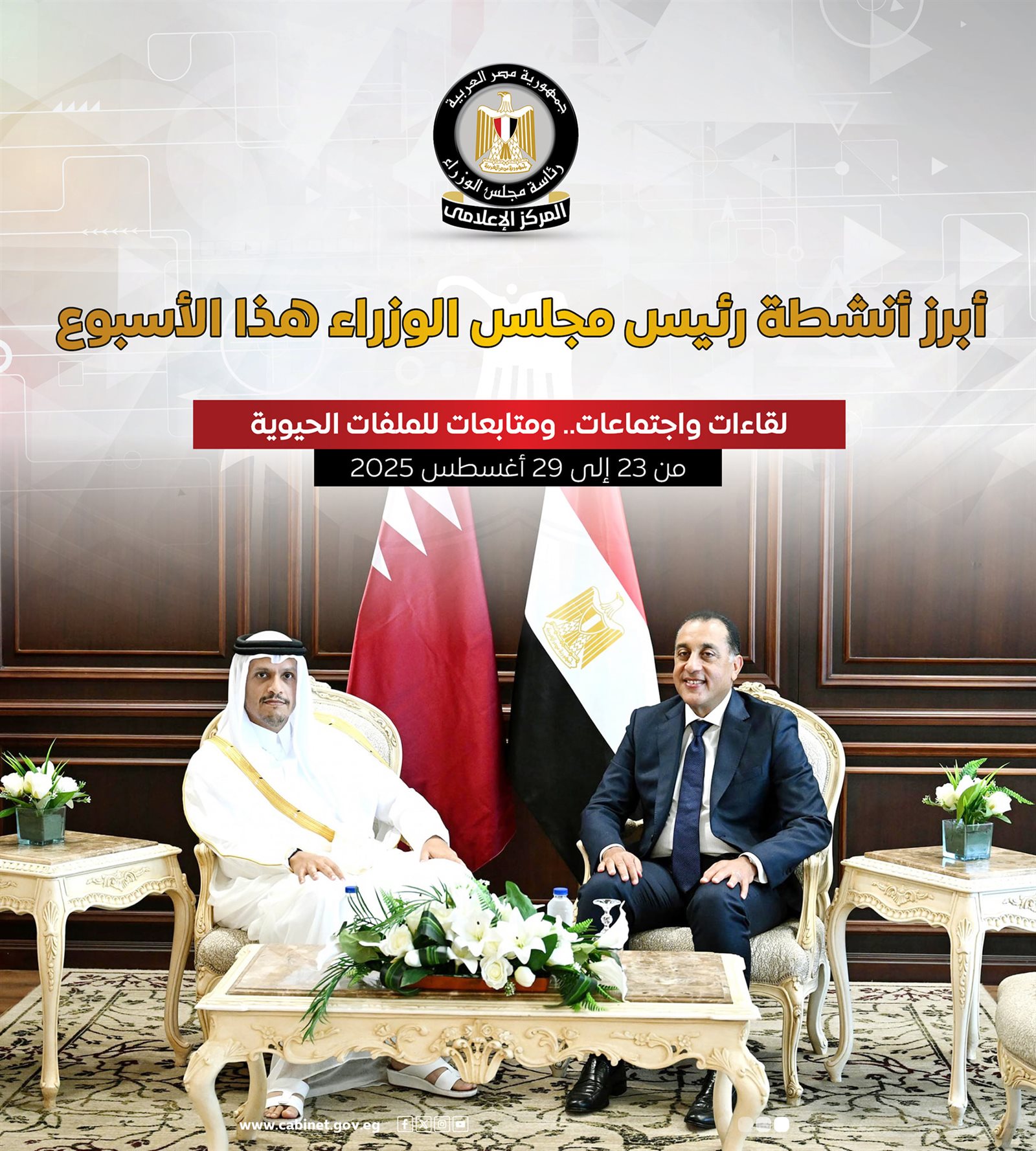 مجلس الوزراء يستعرض بالإنفوجراف أبرز أنشطة رئيس الحكومة هذا الأسبوع