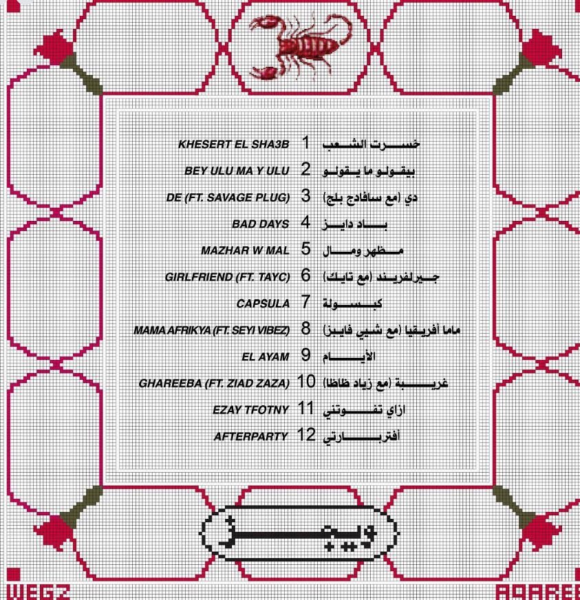 ويتضمن الألبوم 12 أغنية، ، ومن أبرزها: "افتر بارتي" و "بيقولوا ما يقولوا" و"باد دايز" ، و "مظهر و مال"و"إزاي تفوتني" و "عقارب" "كبسولة.