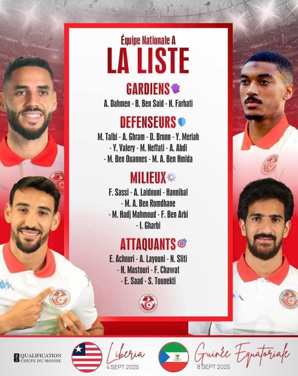 بن رمضان يقود قائمة تونس في تصفيات كأس العالم 2026
