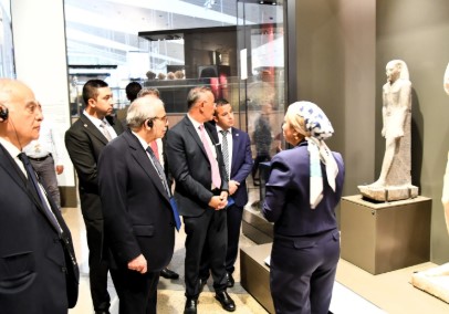 وكان في استقبال الضيوف الدكتور أحمد غنيم الرئيس التنفيذي لهيئة المتحف المصري الكبير، حيث اصطحبهم في جولة تعريفية شملت الساحة الخارجية والبهو الرئيسي والدرج العظيم، وصولًا إلى قاعات العرض الرئيسية التي يبلغ عددها 12 قاعة، والتي تسرد فصولًا متكاملة من تاريخ الحضارة المصرية القديمة منذ بدايات الأسرات وحتى العصرين اليوناني والروماني.