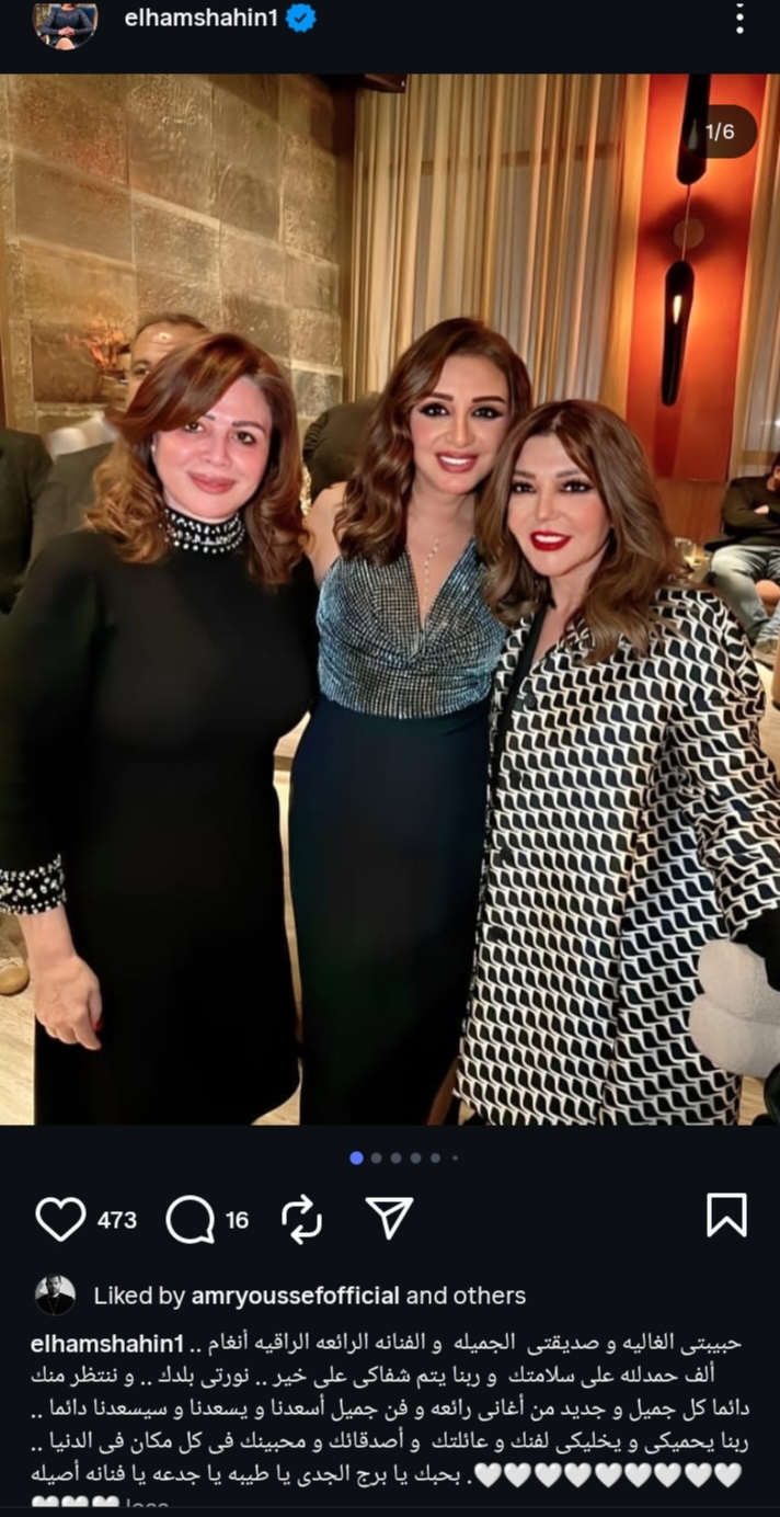 وتابعت: "ربنا يحميكي ويخليكي لفنك وعائلتك وأصدقائك ومحبينك في كل مكان في الدنيا، بحبك يا برج الجدي يا طيبة يا جدعة يا فنانة أصيلة".