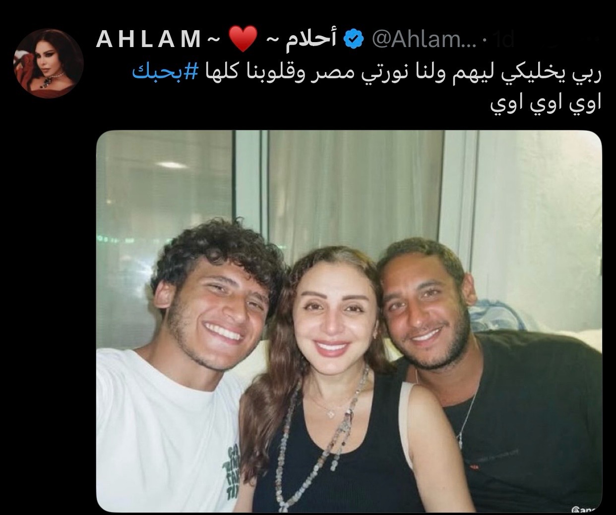 وجهت النجمة أحلام رسالة دعم لـ الفنانة أنغام، ونشرت أحلام صورة لـ أنغام تجمعها بأبناءها بعد عودتها لمصر، وذلك من خلال حسابها الرسمي عبر موقع التواصل الاجتماعي إكس، وكتبت: "ربي يخليكي ليهم ولنا نورتي مصر وقلوبنا كلها.. بحبك أوي أوي أوي".