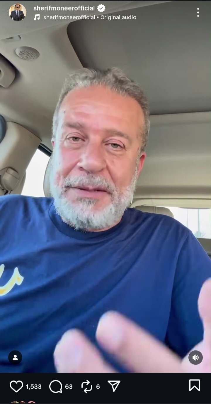 كما حرص الفنان شريف منير على دعم النجمة أنغام، ونشر شريف منير مقطع فيديو له، من خلال حسابه الرسمي عبر موقع تبادل الصور والفيديوهات القصيرة "إنستجرام"، وقال:"الف حمدالله على سلامتك يا انغام ان شاء الله تبقى اخر الأزمات والتعب وترجعي تمتعينا وتبقي احسن من الأول انا اكتر حد بيحبك انا دايما بستمتع بيكي وبفنك وانتي عموما رسالتك مؤثرة وخلت ناس تحب بعض وناس تفوق لمشاعرها وعايزك قوية وأحسن من الأول وربنا يخليكي لأولادك".