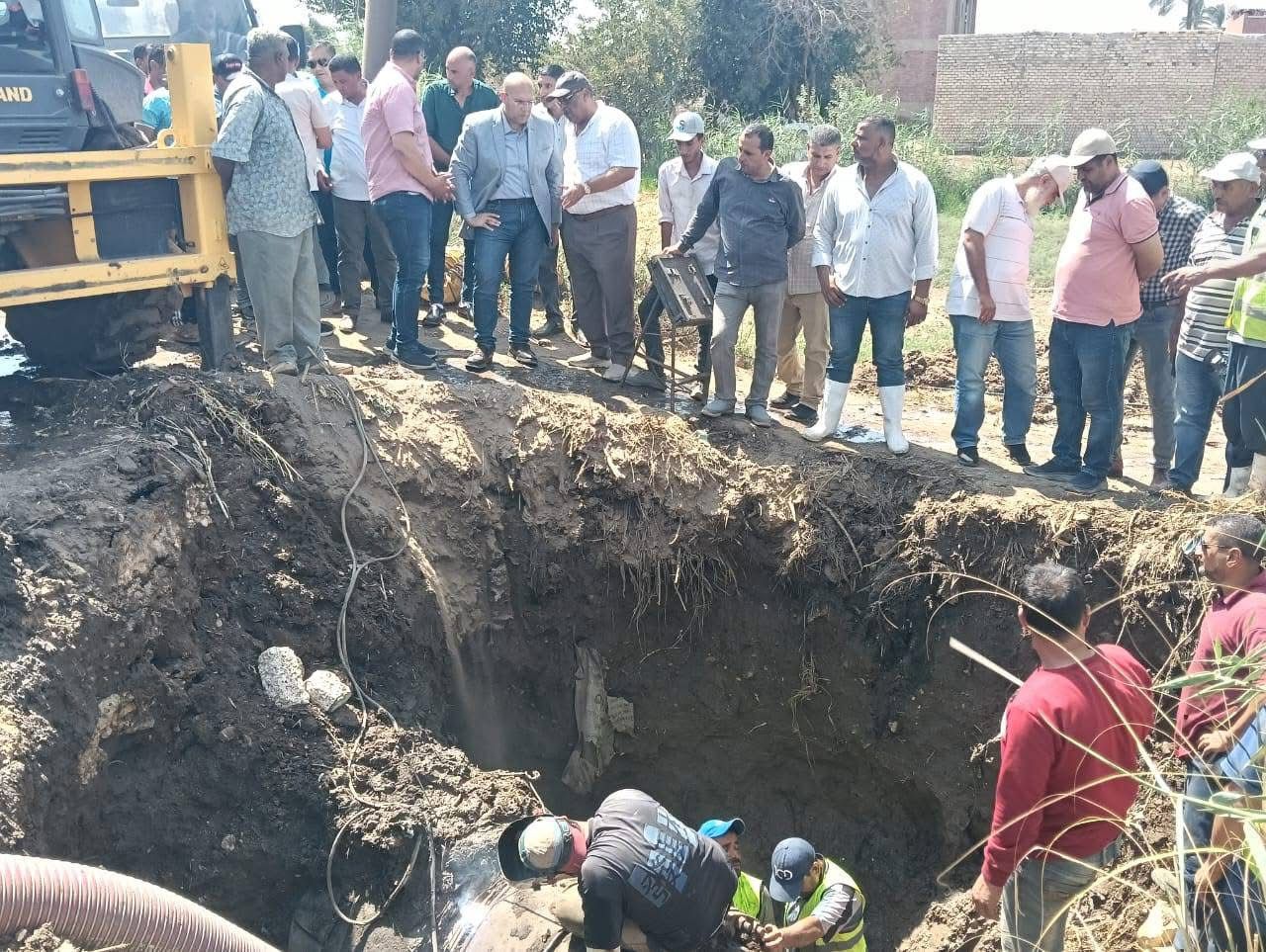نائب محافظ الجيزة يتابع ميدانيًا إصلاح كسر خط مياه رئيسي بالعياط