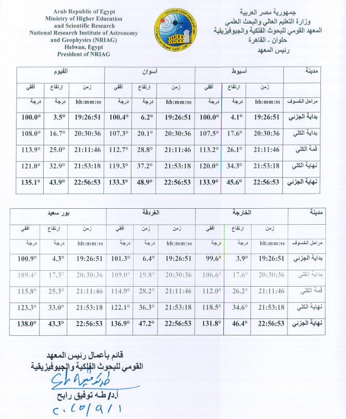 وأشار البيان إلى أن مدة الخسوف الكلية بجميع مراحلها تبلغ نحو 3 ساعات و29 دقيقة، وسيُرى في مصر ومعظم الدول العربية وأفريقيا وأوروبا عند منتصف الليل.