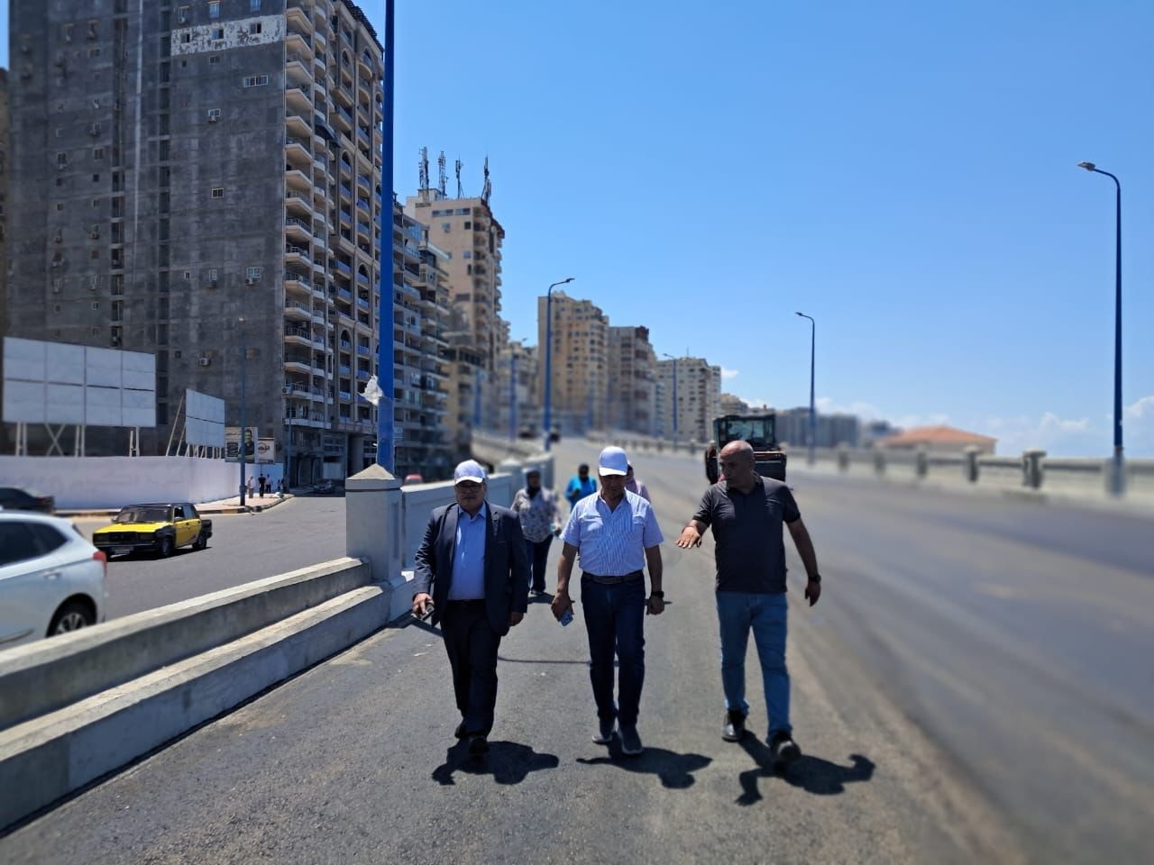كما قام اللواء أ.ح مهندس محمود نصار، بتفقد أعمال تنفيذ إنشاء كوبرى محور السادات على مستويين لربط شارع السادات (٤٥) بالطريق الساحلى الدولى عند التقاطع مع شارع مصطفى كامل.