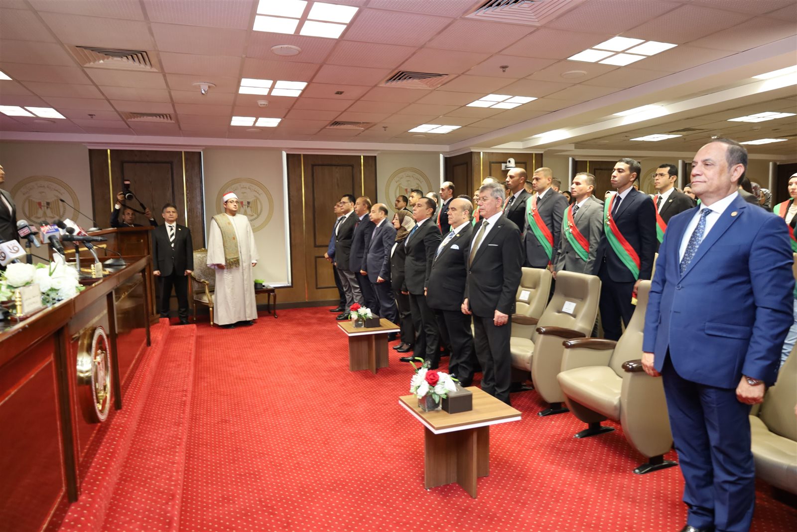 واُستهلت مراسم أداء اليمين القانونية بتلاوة عطرة من آيات من الذكر الحكيم، أعقبها كلمة ألقاها السيد المستشار/ محمد الشناوي – رئيس هيئة النيابة الإدارية، توجه فيها سيادته بالشكر لفخامة الرئيس/ عبد الفتاح السيسي - رئيس الجمهورية، لإصدار سيادته القرار الجمهوري رقم ٤٤٨ الصادر بتاريخ ٢٥ أغسطس الماضي ،كما رحب فيها سيادته بمعالي المستشار الجليل/ عدنان فنجري - وزير العدل والسادة المستشارون مساعدي وزير العدل والحضور الكريم، مهنئاً معاوني النيابة الإدارية الجدد على دخولهم لمحراب العدالة المقدس والتحاقهم بالنيابة الإدارية مؤكداً أن أداؤهم القَسَم المُقدس، لا يقف على كلمات يرددونها بل هو عهد وميثاق والتزام مهني وأخلاقي، مؤكداً على ضرورة التحلي بأعلى درجات النزاهة والانضباط ليكونوا مثالًا مشرفًا لما يجب أن يكون عليه عضو الهيئة القضائية، وأن يبذلوا - وبكل تفانٍ - العناية الواجبة في أداء رسالتهم المقدسة في مكافحة الفساد وحماية المال العام وتحقيق العدالة ورد الحقوق لأصحابها وإعلاء سيادة القانون، كما أوصى سيادته بعدم التوقف عن اكتساب العلم والمعرفة، ففي عصر الثورة الرقمية والتطور المستمر لتقنيات الذكاء الاصطناعي، تشهد العلوم بكافة فروعها الجديد في كل لحظة، وهو ما ينعكس بالتأكيد على منظومة العدالة وإجراءات التحقيق وآليات تطبيق القانون، مشدداً سيادته على أهمية أن يكونوا دوماً مواكبين لكل جديد مسلحين بأحدث ما وصل إليه العلم حريصين على اكتساب المعرفة وتعزيز البحث العلمي.