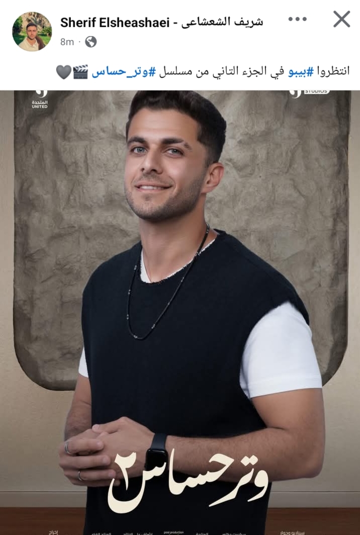 شريف الشعشاعي يشوق جمهوره للموسم الثاني من مسلسل وتر حساس (صورة)