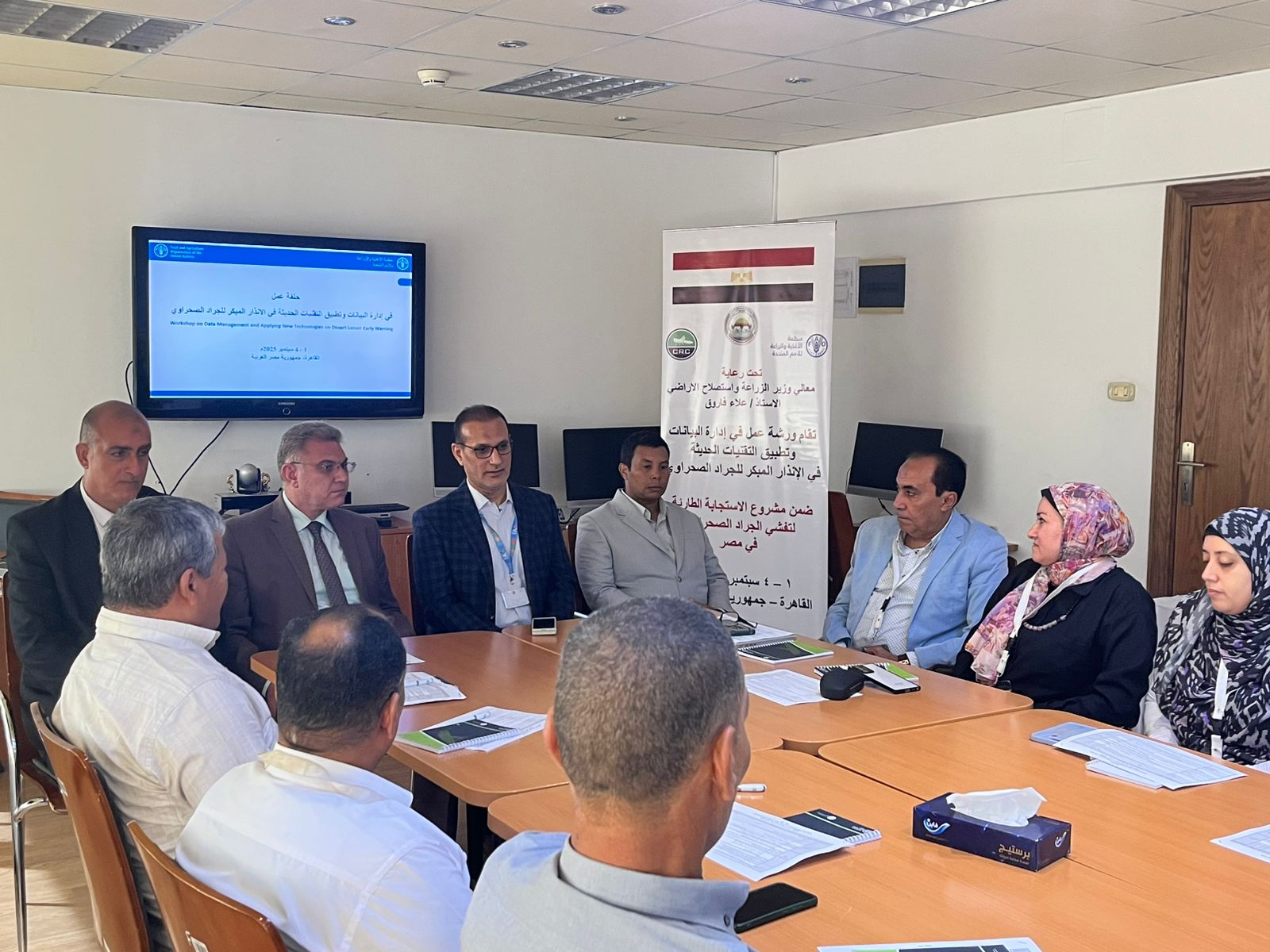 افتتح دكتور أحمد رزق رئيس الإدارة المركزية لمكافحة الآفات بوزارة الزراعة واستصلاح الأراضي، فعاليات ورشة عمل وطنية تهدف الى تنمية المهارات فى مجال جمع البيانات وتحليلها تمهيداً لاتخاذ القرار المناسب لمكافحة الجراد الصحراوى فى مصر.