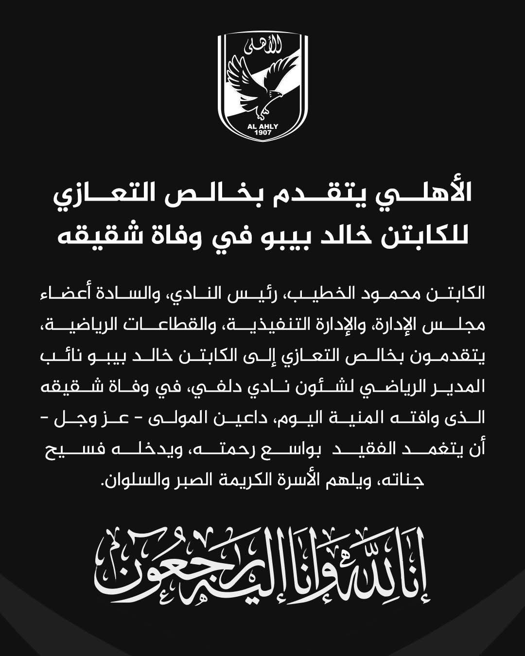 الأهلي يقدم التعازي للكابتن خالد بيبو في وفاة شقيقه