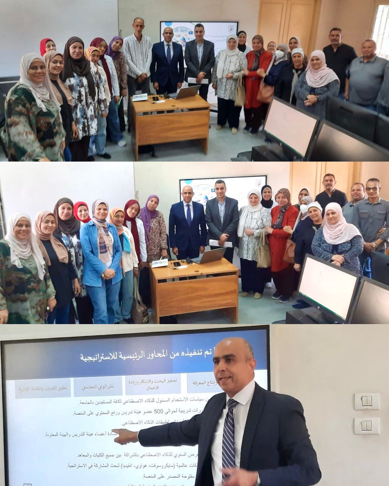 نظمت كلية الحاسبات والذكاء الاصطناعي بجامعة القاهرة تحت رعاية الدكتور محمد سامي عبد الصادق رئيس الجامعة، وإشراف الدكتور هيثم حمزة عميد الكلية، ورشة عمل متخصصة في الذكاء الاصطناعي التطبيقي لعدد من الكوادر الإدارية بالكلية، وذلك تنفيذًا للاستراتيجية الوطنية للذكاء الاصطناعي، ودعمًا للركيزة الرابعة من استراتيجية جامعة القاهرة للذكاء الاصطناعي التي تركز على “تعزيز الكفاءات الإدارية باستخدام تقنيات الذكاء الاصطناعي.