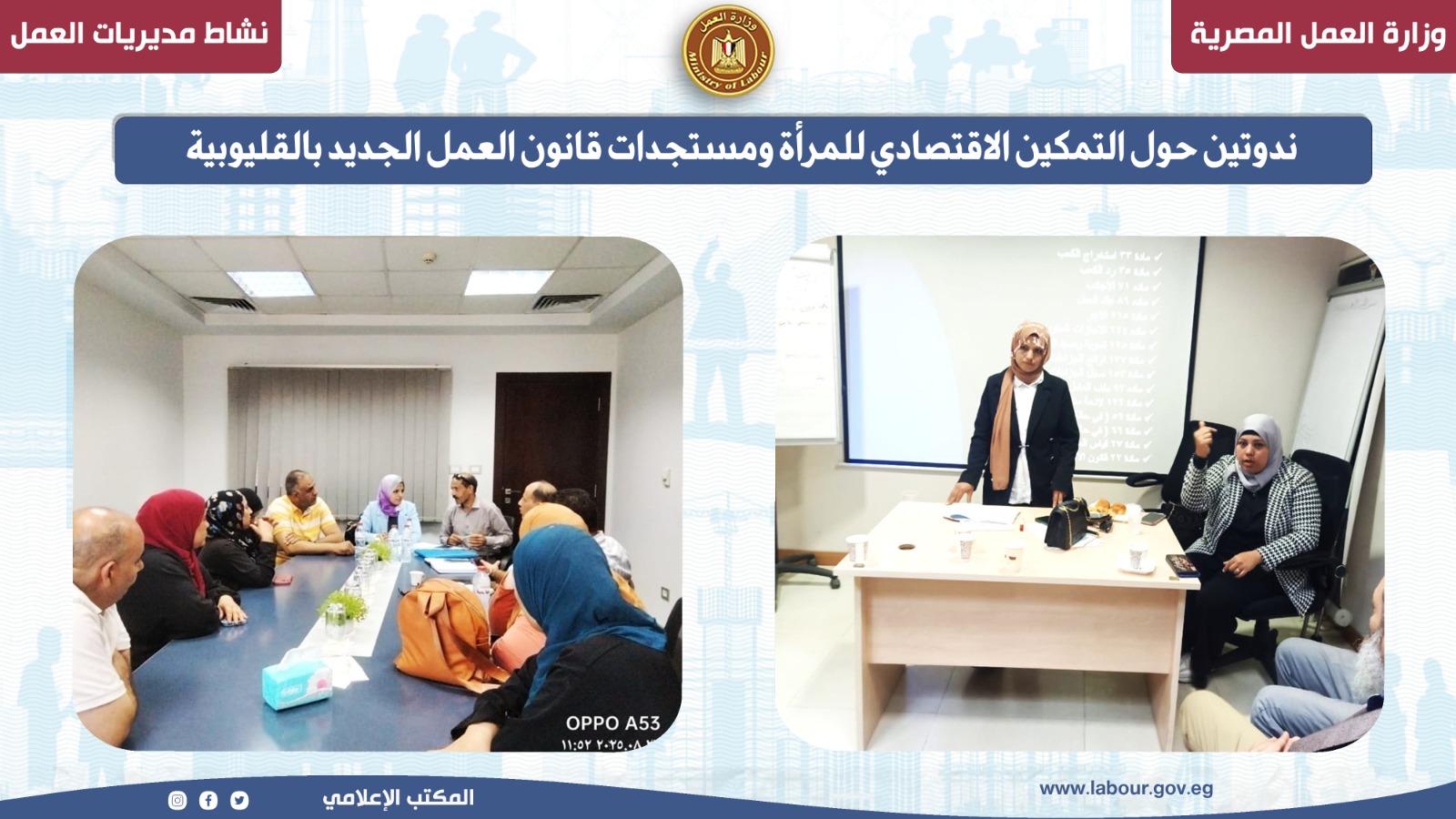3-فعاليات حول التمكين الاقتصادي للمرأة ومستجدات قانون العمل الجديد بالقليوبية
