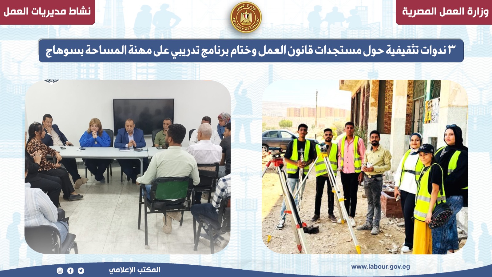 7- 3 ندوات تثقيفية حول مستجدات قانون العمل.. وختام برنامج تدريبي على مهنة المساحة بسوهاج