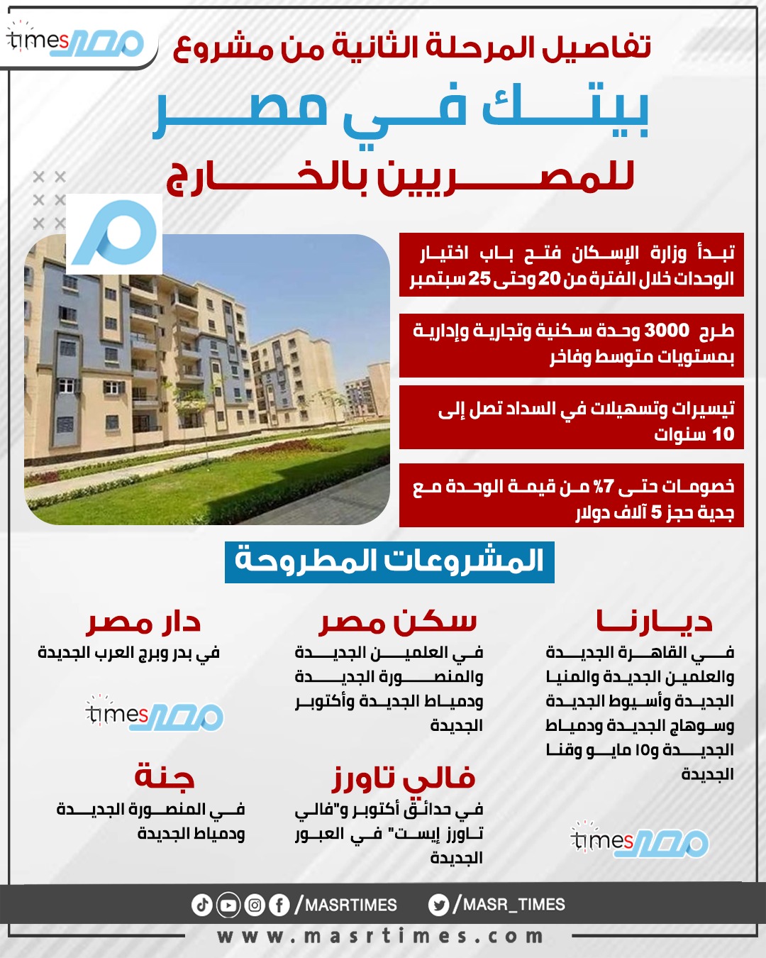 للمصريين بالخارج.. تفاصيل المرحلة الثانية من مشروع بيتك في مصر (إنفو جراف)
