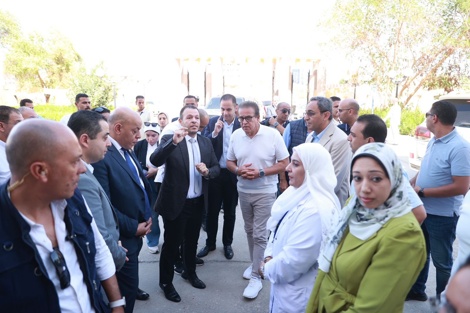 رافق الوزير في جولته الدكتور محمد الطيب، نائب الوزير، والدكتور بيتر وجيه، مساعد الوزير للطب العلاجي، والدكتور شريف مصطفى، مساعد الوزير للمشروعات القومية، والدكتور عمر شريف عمر، أمين المجلس الأعلى للمستشفيات الجامعية، والدكتورة مها إبراهيم، رئيس أمانة المراكز الطبية المتخصصة، والدكتور أحمد صادق، مدير مديرية الشؤون الصحية بقنا.