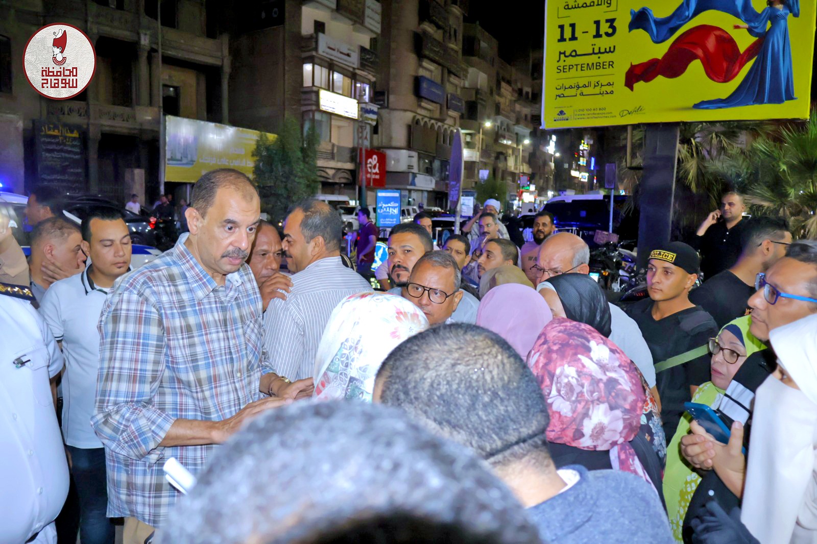 وتفقد محافظ سوهاج ومرافقيه شارع المحطة بدءا من ميدان العروبة وحتى ميدان العارف بالله بطول 1000 متر، موجها بمراجعة تراخيص المحال التجارية بممرات الأبراج السكنية بالشارع، والتأكد من التزامها باشتراطات السلامة والصحة المهنية، على أن تقوم الحماية المدنية بالتأكد من مدى التزامها بمعايير الأمن والأمان، حفاظا على سلامة المواطنين.