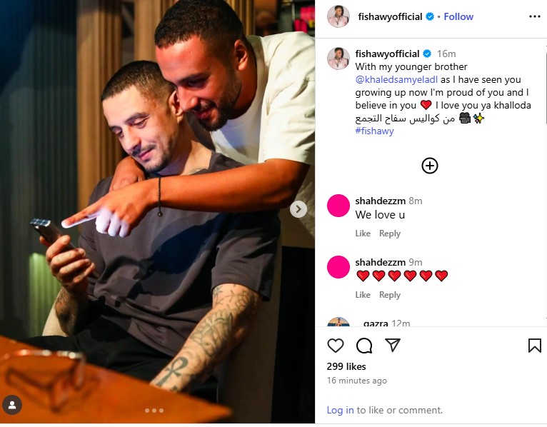 ووجه أحمد الفيشاوي رسالة لـ خالد سامي العدل، وكتب من خلال حسابه الرسمي عبر موقع تبادل الصور والفيديوهات القصيرة "إنستجرام"، قال: "مع أخي الصغير خالد سامي العدل، كما رأيتك تكبر الآن أنا فخور بك ومؤمن بك.. أحبك يا خلود.. من كواليس سفاح التجمع".