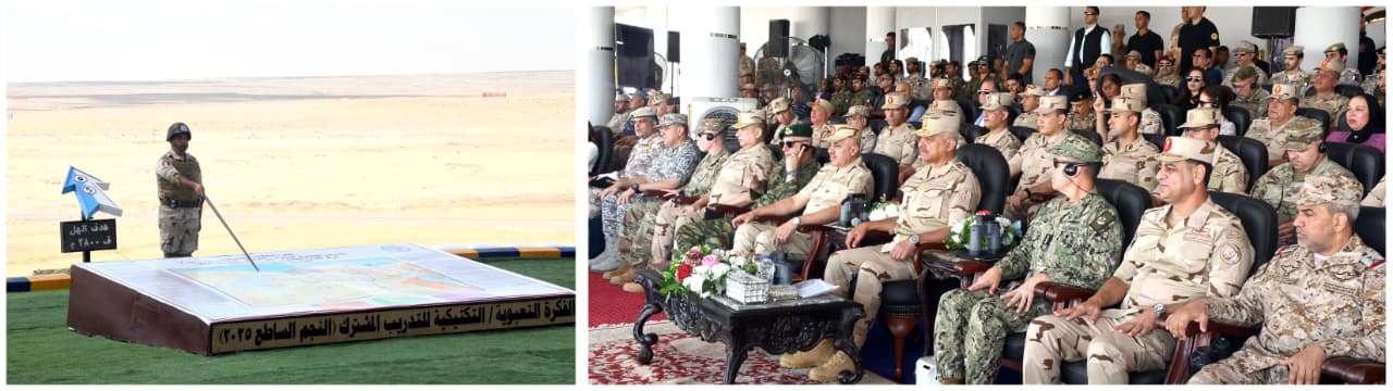 شهد الفريق أول عبد المجيد صقر القائد العام للقوات المسلحة وزير الدفاع والإنتاج الحربى، المرحلة الرئيسية للتدريب المصرى الأمريكى المشترك (النجم الساطع - 2025)، وذلك بحضور الفريق أحمد خليفة رئيس أركان حرب القوات المسلحة والفريق أول براد كوبر قائد القيادة المركزية الأمريكية والفريق أول ديميتريوس خوبيس رئيس هيئة الأركان العامة للقوات المسلحة اليونانية وقادة الأفرع الرئيسية وعدد من قادة القوات المسلحة المصرية والدول المشاركة بالتدريب والملحقين العسكريين وعدد من دارسى الكليات والمعاهد العسكرية والإعلاميين .