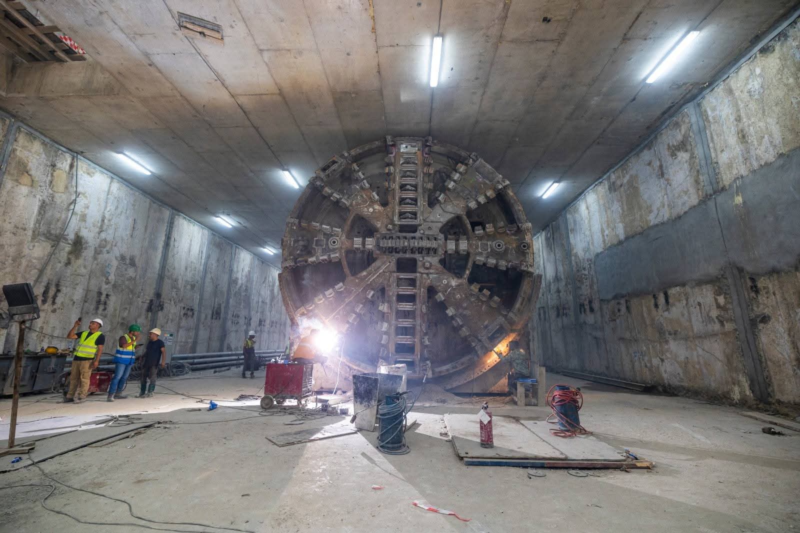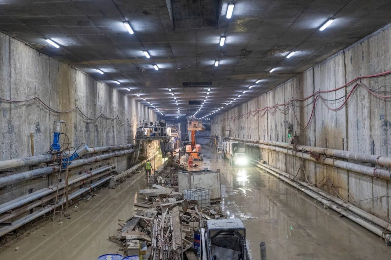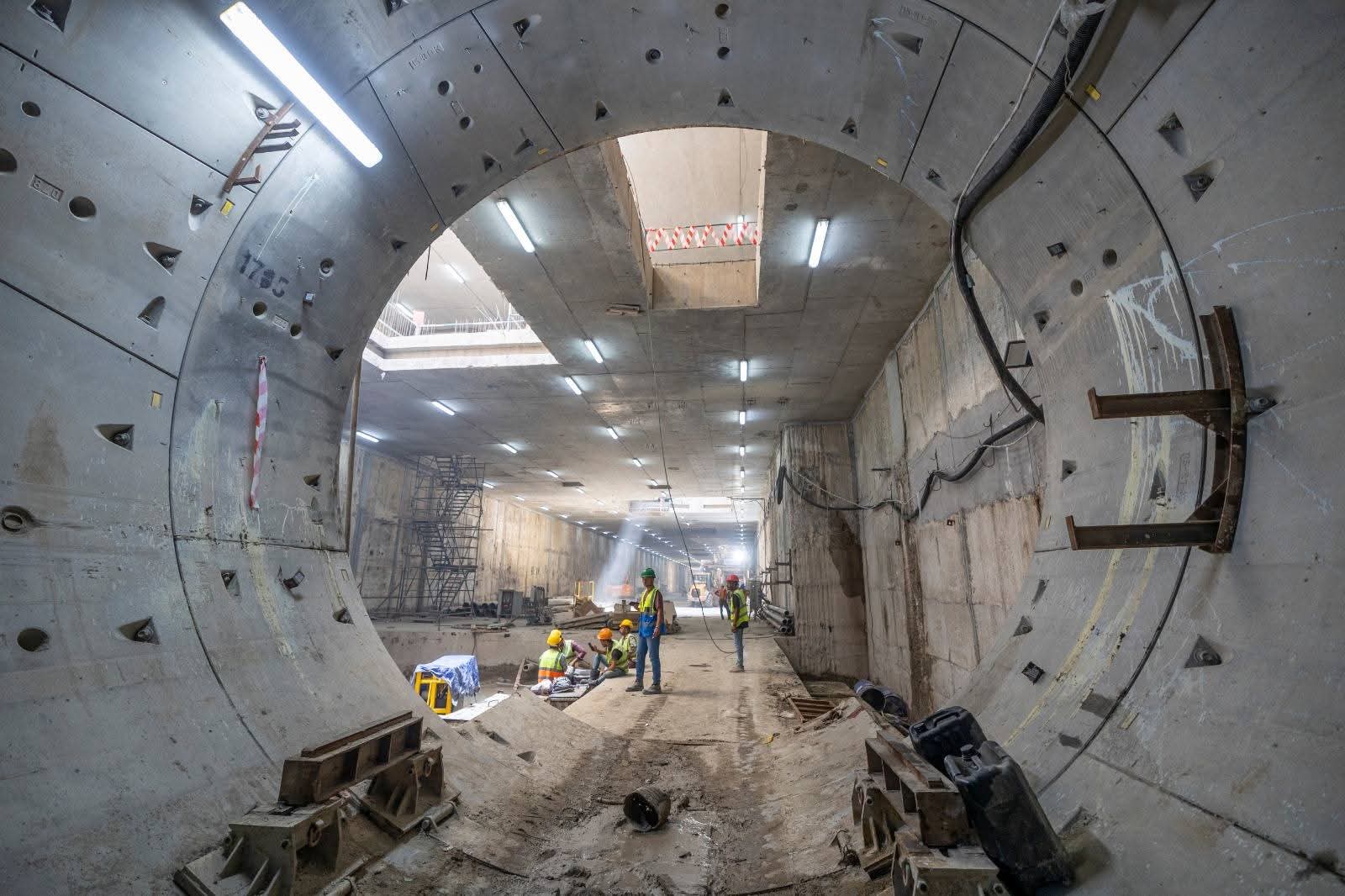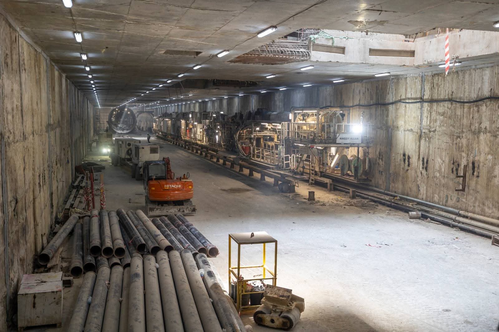 ويجري حالياً تنفيذ الأعمال الإنشائية بالمحطات وأعمال الحفر النفقي لنفقي المترو (نفق لكل اتجاه) بواسطة 4 ماكينات حفر نفقي (2 ماكينة لكل اتجاه).