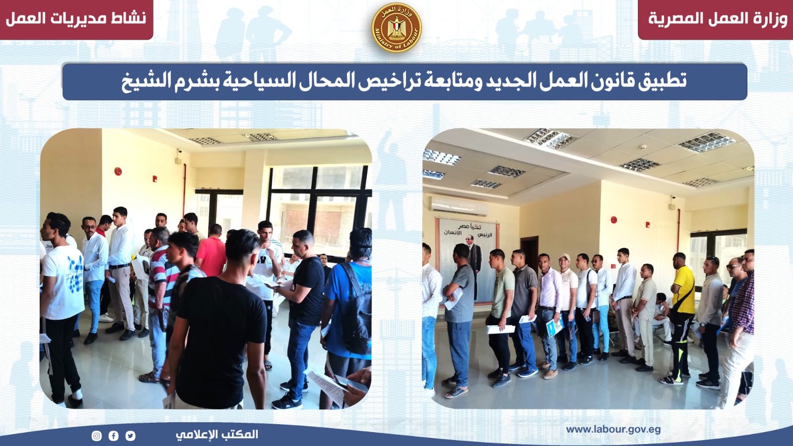 تطبيق قانون العمل الجديد ومتابعة تراخيص المحال السياحية بشرم الشيخ