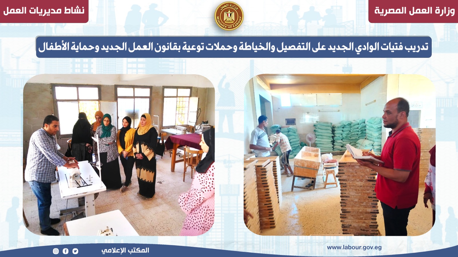 تدريب فتيات الوادي الجديد على مهنة التفصيل والخياطة.. وحملات توعية بقانون العمل الجديد وحماية الأطفال.