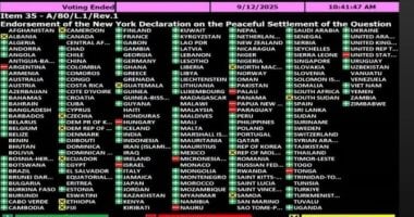 بـ142 صوتاً مؤيداً.. التفاصيل الكاملة لاعتماد الأمم المتحدة إعلان نيويورك بحلول الدولتين لإنهاء الصراع