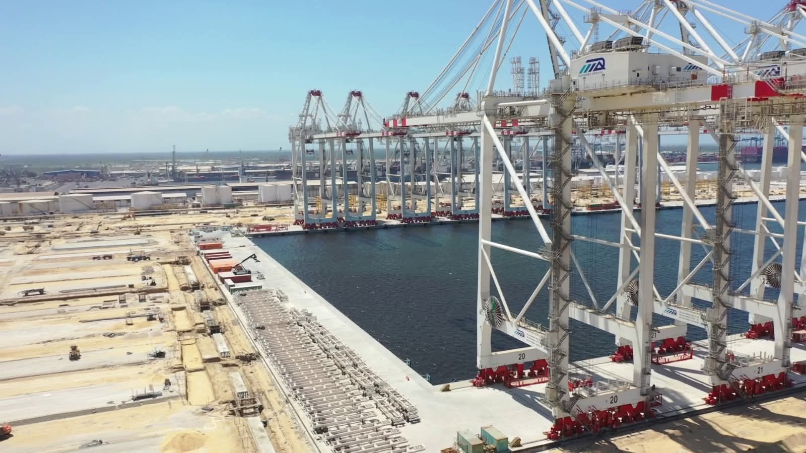 "شاهد" أحدث تصوير جوي لمحطة حاويات تحيا مصر 1 بميناء دمياط