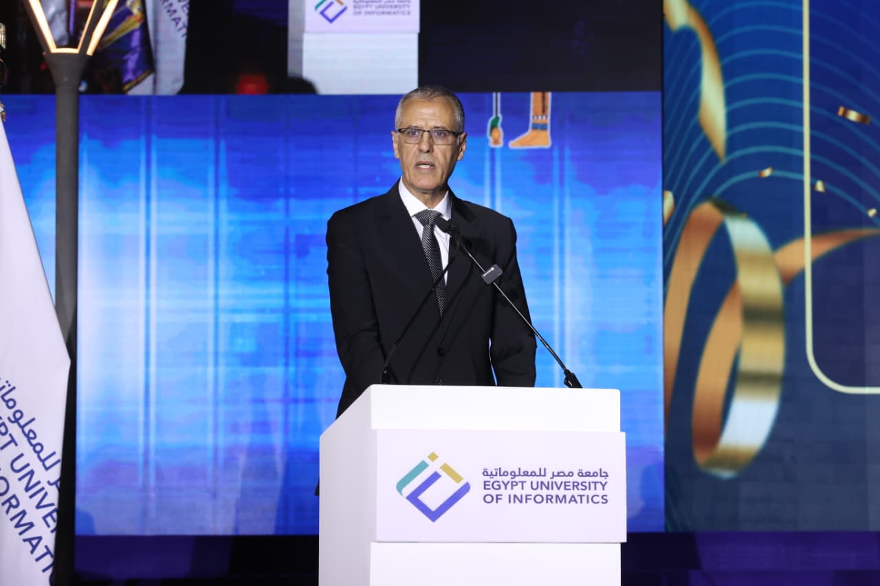 وقال الدكتور/ أحمد حمد القائم بأعمال رئيس جامعة مصر للمعلوماتية: "إن اعداد جيل جديد من المتخصصين فى مختلف مجالات العلوم التطبيقية خاصة المرتبطة بمجالى الأمن السيبرانى والذكاء الاصطناعى، وغيرها من علوم ووظائف المستقبل، هى مهمة كُلفت بها جامعة مصر للمعلوماتية، وهى اليوم تحتفل بتخريج أول دفعة من الخريجين الذين نراهن عليهم لتحقيق هذه المهمة لتعزيز قدرات مصر بتقنيات الثورة الصناعية الرابعة، والتى نؤمن بقدرة مصر على المشاركة البناءة فيها وليس مجرد مستهلك لابتكاراتها"، لافتًا إلى أن مشاريع التخرج بما تضمه من برامج إلكترونية باستخدام تقنيات الذكاء الاصطناعى التى صممها وابتكرها خريجى أول دفعة بكليات الجامعة تعكس المستوى العالى الذى حققوه وتؤكد قدرتهم على تحويل مصر لمركز عالمى لتقنيات تكنولوجيا الأعمال والاتصالات.