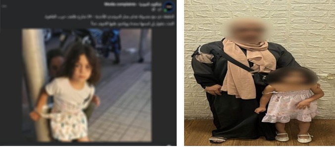 وتوصلت أجهزة وزارة الداخلية من خلال الفحص إلى تحديد وضبط السيدة (وبصحبتها نجلتها "4 سنوات الظاهرة بالصورة").