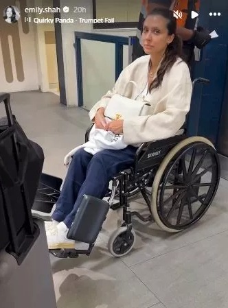نشرت الفنانة الأمريكية إميلي شاه صور لها من على حسابها الشخصى على موقع الصور إنستجرام، وهى تجلس على كرسى متحرك، ويقوم زوجها النجم المصرى العالمى مينا مسعود بحمل حقائب السفر الخاصة بهما، ولم تكشف شاه عن سبب جلوسها على الكرسى المتحرك، ألا أنها بعد ساعات من هذه الصور طمأنت متابعيها، حيث نشرت صور جديدة تجمعها بـ زوجها من عشاء رومانسى.