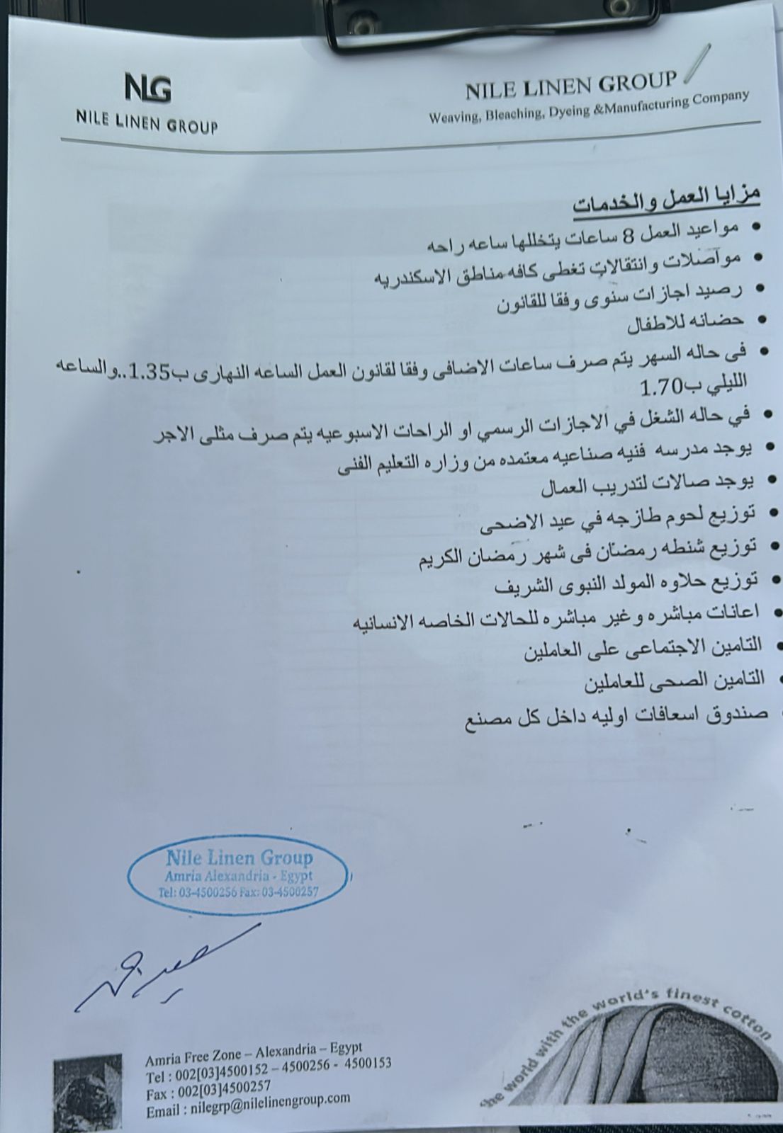 أعلن وزير العمل محمد جبران ،اليوم الاثنين، عن عودة عجلات الإنتاج إلى الدوران بكامل طاقاتها ، في شركة نايل لينين جروب للنسيج والمفروشات بالمنطقة الحرة بالعامرية بالإسكندرية، بعد مفاوضات جماعية ناجحة نظمتها "الوزارة" مع الإدارة والعمال "1000 عامل"، لتنفيذ المطالب العمالية المشروعة ، وكذلك تطبيق القانون بشأن واقعة فقدان العاملة دعاء محمد،طفلتها الرضيعة ابنة الثلاثة أشهر التي توفيت على ذراعها.