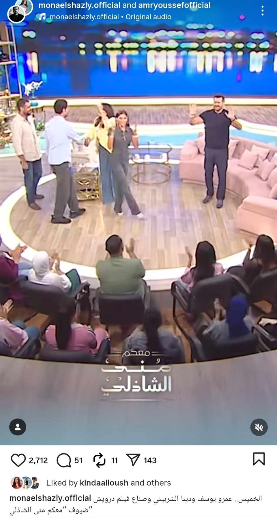 وأعلنت منى الشاذلي عن موعد الحلقة، حيث نشرت البرومو الترويجي من خلال حسابها الرسمي عبر موقع تبادل الصور والفيديوهات القصيرة إنستجرام، وعلقت: "الخميس.. عمرو يوسف ودينا الشربيني وصناع فيلم درويش ضيوف منى الشاذلي".