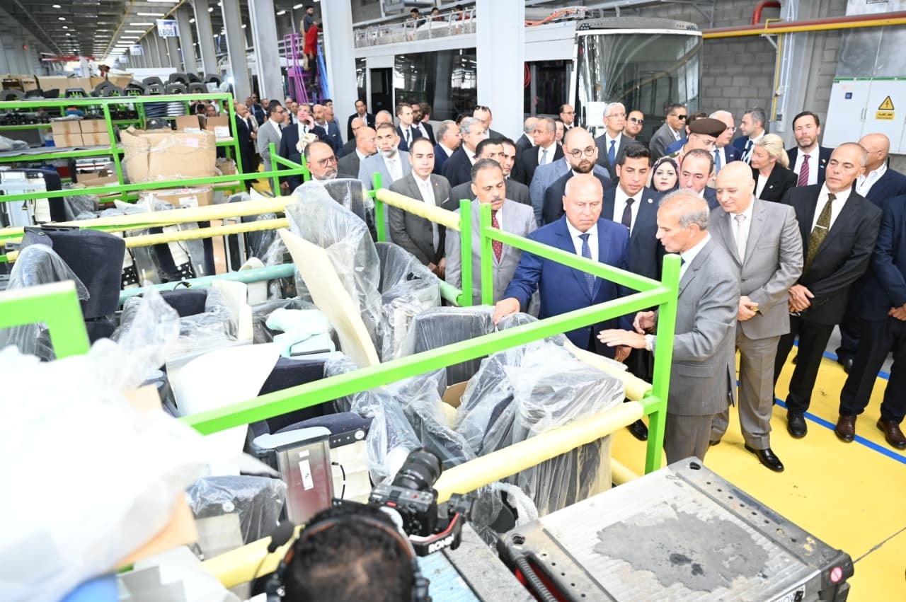 وخلال جولته التفقدية لخطوط الإنتاج، اطلع الوزير على مختلف المراحل التصنيعية، حيث تفقد خط تجميع جسم الأتوبيسات داخليًا وخارجيًا، وتابع مراحل تركيب المكونات الداخلية، كما شاهد النماذج التامة الصنع المخصصة للتصدير إلى بريطانيا والأسواق الأوروبية، والتي تمثل باكورة إنتاج الخط الجديد.