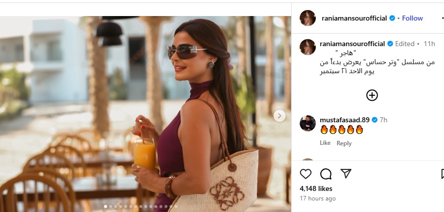 ونشرت رانيا منصور كواليس مسلسل وتر حساس 2، والتي جمعتها بـ غادة عادل، من خلال حسابها الرسمي عبر موقع تبادل الصور والفيديوهات القصيرة "إنستجرام"، وقال: "هاجر.. من مسلسل وتر حساس يعرض بدءًا من يوم الأحد 21 سبتمبر".